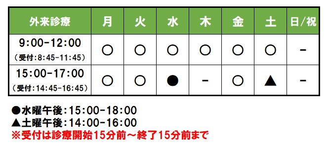 ※2021年4月1日から診察及び受付時間を以下の通り変更いたしました。